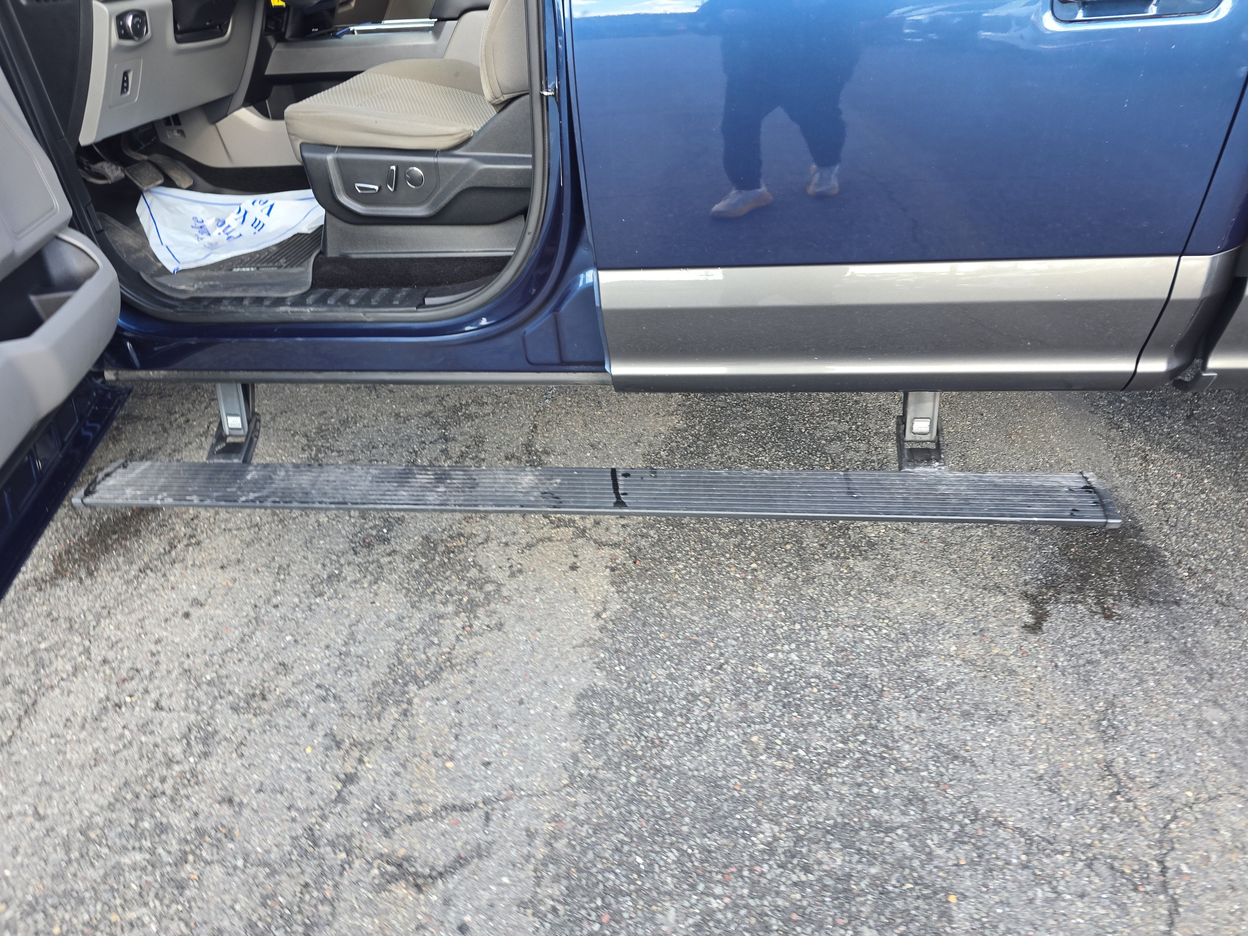 Blue 2017 Ford F-150 XLT 4WD 6-Speed Automatic Electronic 5.0L V8 FFV All Weather Tires, 4WD, 10-Way Power Driver's & Passenger Seats, 110V/400W Outlet, 4.2" Productivity Screen in Instrument Cluster, 6 Speakers, AM/FM radio, Auto-Dimming Rear-View Mirror, BoxLink, Brake assist, Chrome Billet Style Grille w/Chrome Surround, Chrome Door & Tailgate Handles w/Body-Color Bezel, Chrome Step Bars, Class IV Trailer Hitch Receiver, Cloth 40/20/40 Front Seat, Delay-off headlights, Dual front impact airbags, Dual front side impact airbags, Electronic Stability Control, Equipment Group 302A Luxury, Front fog lights, Fully automatic headlights, Heated Front Seats, Integrated Trailer Brake Controller, Leather-Wrapped Steering Wheel, LED Box Lighting, Power Glass Heated Sideview Mirrors, Power steering, Power windows, Power-Adjustable Pedals, Power-Sliding Rear Window, Radio: Single-CD w/SiriusXM Satellite, Rear step bumper, Rear Under-Seat Storage, Rear View Camera w/Dynamic Hitch Assist, Rear Window Defroster, Remote keyless entry, Remote Start System, Reverse Sensing System, Security system, Single-Tip Chrome Exhaust, Speed control, Spray-In Bedliner (Pre-Installed), Steering wheel mounted audio controls, SYNC, SYNC 3, Telescoping steering wheel, Tilt steering wheel, Voice-Activated Navigation, Wheels: 18" Chrome-Like PVD, XLT Chrome Appearance Package.